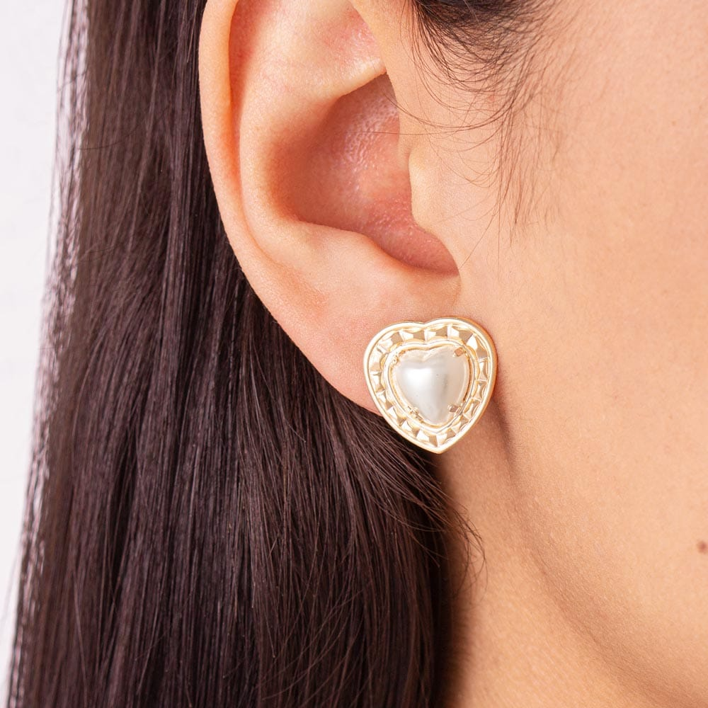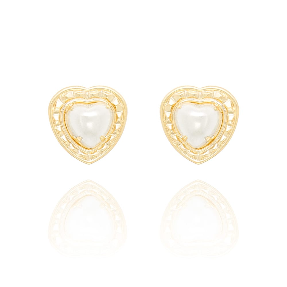 Brinco Coração Pérola – Banhado em Ouro 18K