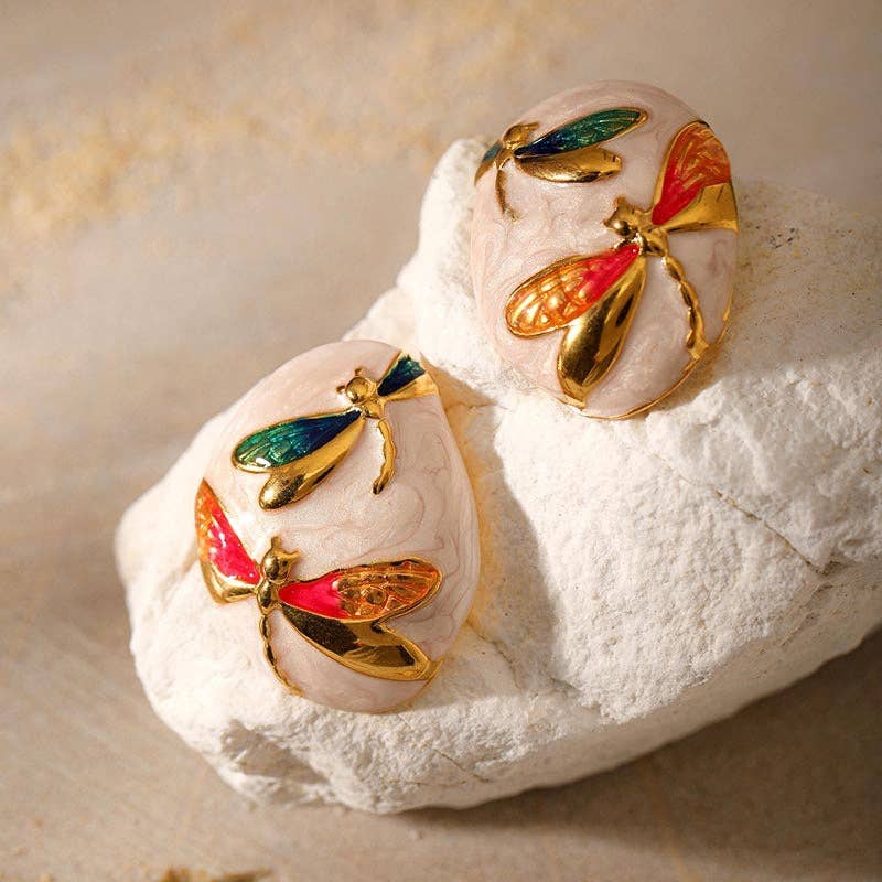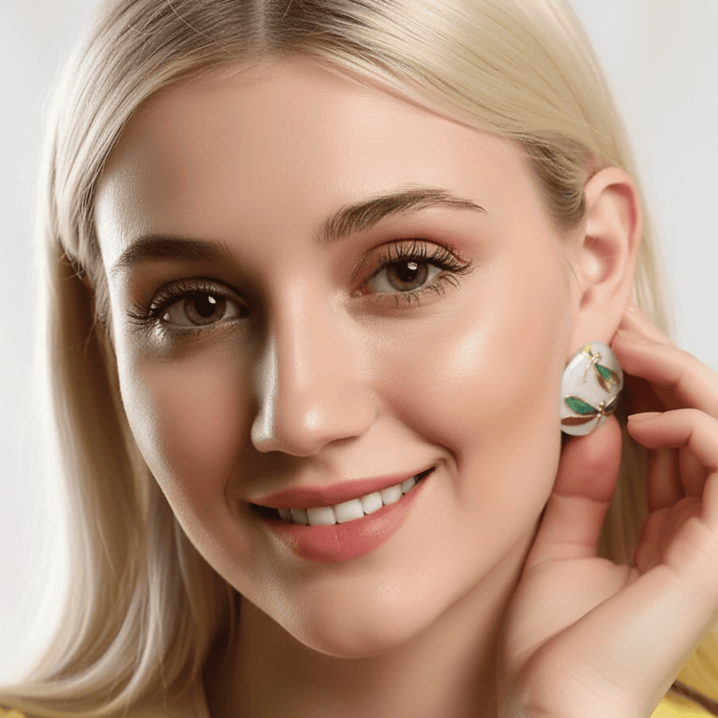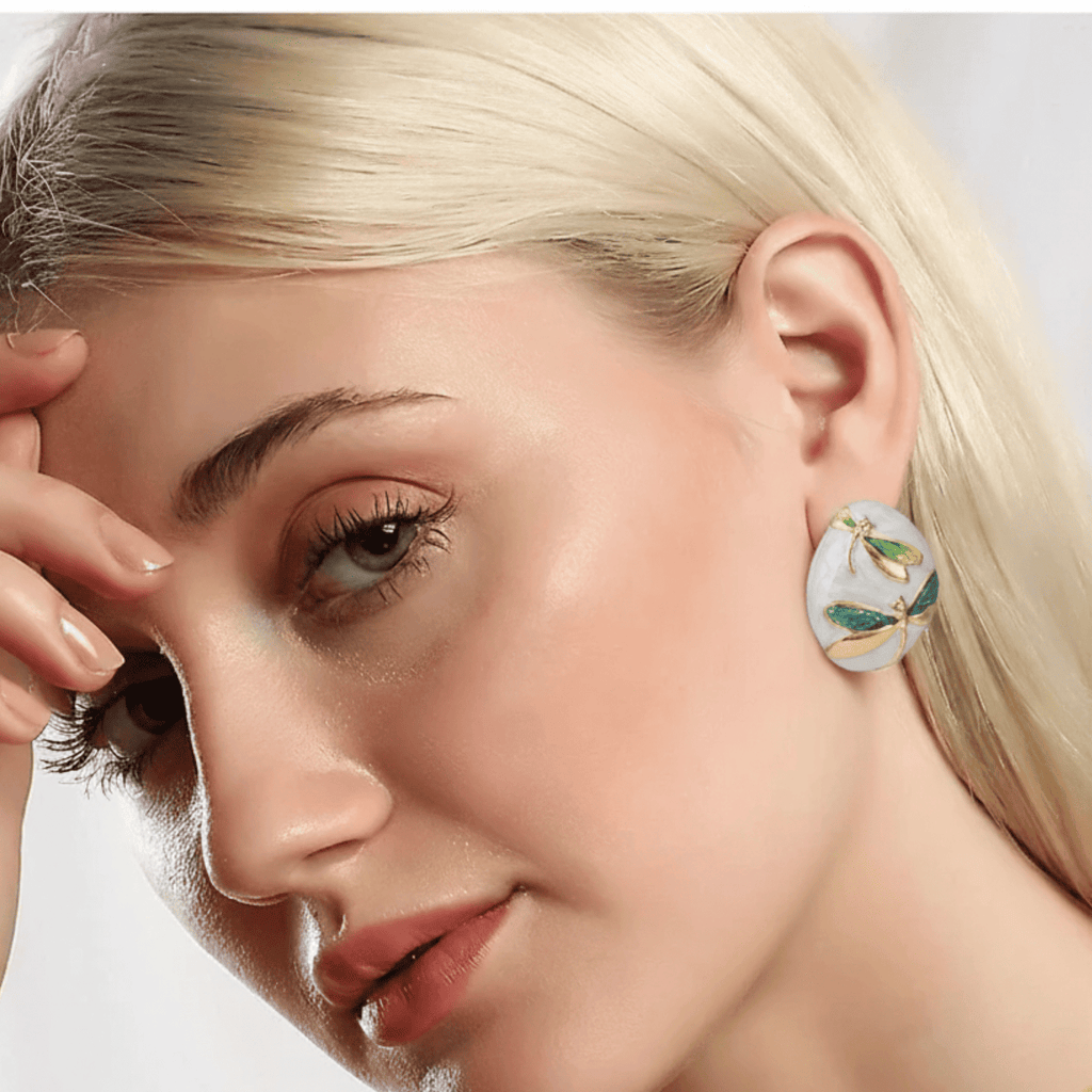 O Brinco Aurora das Libélulas traz o encanto etéreo das libélulas banhadas de luz, repousando sobre uma base suave em tons azulados que lembram o amanhecer mais sereno. Cada detalhe dourado reflete um toque de magia, transformando o acessório em uma verdadeira obra de arte que destaca o rosto com elegância instantânea.